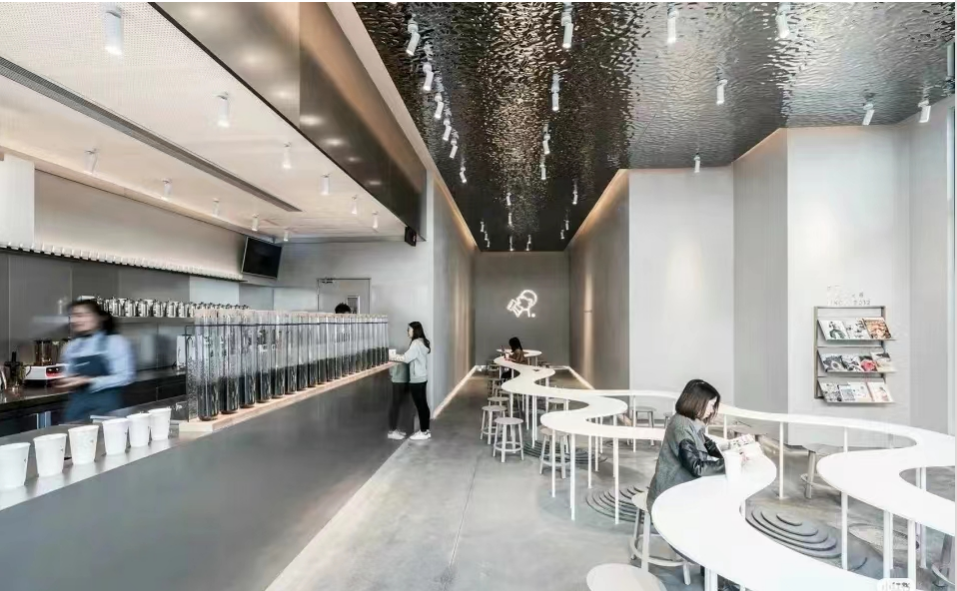 Stainless steel wavy plate ceiling decoration for HEYTEA not only enhances the store's taste and atmosphere, but also brings a unique sense of beauty and texture to the bar. This stylish and modern decorative style attracts more customers to come and taste the drinks. At the same time, the lightweight and portable characteristics of the stainless steel wavy plate ceiling also facilitate installation and maintenance, reducing costs. This decorative method can bring unique visual effects and a modern feel to the bar, allowing customers to enjoy food and drinks in a comfortable environment.
